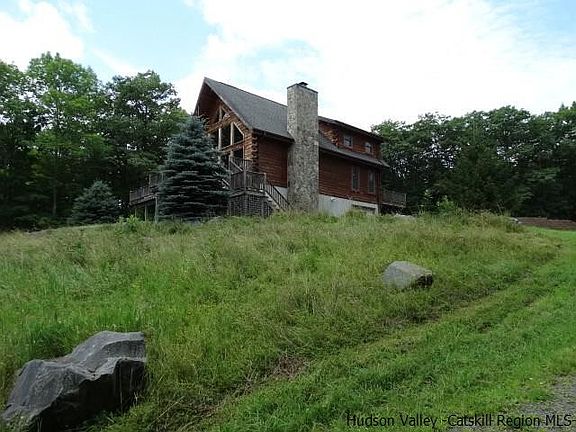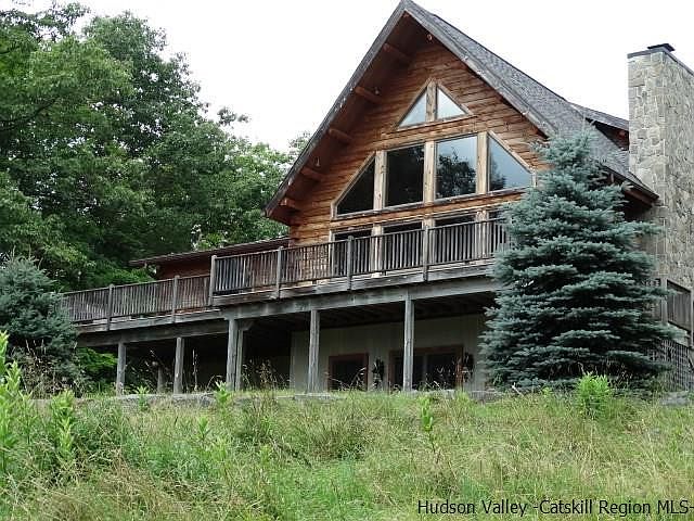 Chalet la Zagara The picturesque view of Hunter Mountain’s ski slopes so intricately carved into the face of the Catskill Mountains is what “stole the heart” of interior designer Catherine LaMarca and her husband. In the early 2000’s this rustic 4 bedroom, 3.5 bath log home was constructed to capture the beauty of nature in its most pristine and unrefined form. Sitting high on a hill upon 10+ rolling acres in New York’s country side, the interiors of this rustic 3500+ square foot European log home are just as aesthetically pleasing as its seemingly un-touched counterpart. Catherine’s interior design includes vivid patterns, zesty colors and unique lighting fixtures that not only awaken but also rejuvenate the soul. The authentic Durango limestone color of the main floor inspires the creamy tones and sets the ambiance for the perfect weekend retreat. The living area with a spectacular mountain-side view framed by oversized window panes is well designed to reflect some French flair with high ceiling, and exposed trusses and delivers an astonishing view of Hunter Mountain ski slopes. The massive fireplace commissioned for this project and carved from solid pieces of Durango limestone provides an additional focal point in the room as well as sets out to warm up the most chilling of nights. The open floor plan allows you to strategically place your furniture to optimize the view as well as enjoy the beautiful fire or watch a movie on TV. The kitchen has all high-end stainless steel appliances along with signature cherry wood cabinetry and a farm sink. The backsplash behind the WOLFE stove is covered in handmade Italian ceramic title. The imported Statuary Calcutta marble counter tops, undoubtedly one of the most luxurious materials in the world, add that gorgeous, high-end desirable look. The grand island and open dining area permits room for entertaining and traditional celebrations. Down the hall you will find 2 bedrooms and 1½ bathrooms. The ½ bathroom or powder room is beautifully designed, the floor is covered with marble with an antiqued finish, and the walls are tiled up to 4 feet in a combination of stone and artisan hand-painted Majolica pottery, imported from Italy. The upper walls are finished with an attractive and elegant 3D Venetian stucco finish that enhances the light and dark tones creating a classic European look. The vanity was designed and built in Tuscany with a combination of wood and wrought iron. Sconces are high-end signature Italian lighting imported from Italy as well. As a final touch, the faucet is Rohl with a hand rubbed bronze finish. The Main Bath is a combination of a bit country and a bit contemporary. All faucets are Italian contemporary fixtures and the walls are a combination of handmade white ceramic tiles and 1x1 Bisazza glass mosaics for that flawless appearance. All plumbing fixtures are Kohler, faucets are Rohl in polished chrome and all accessories are signature in cast bronze and hand wrought iron. The 550+/- square foot loft that includes the master suit over-looks the living room and has a master bath that creates the feel of a personal day spa in a weekend getaway. The master bath includes a steam shower as well as a luxuriously sized soaking tub. The custom vanity includes a grey limestone counter top with a sink that was carved from a solid piece of granite. Two of the bathroom walls as well as the steam shower are clad with large format grey limestone from floor to ceiling. The separate master suite offers a private sanctuary high above the living room below. To accommodate extra guests the ground floor houses a spacious guest bedroom and a full bath complete with a shower tiled in glass mosaic. The main space of this bath is also tiled to the ceiling with designer tiles. The large gathering area on this floor with its open floor plan has a magnificent view of Hunter Mountain through the floor to ceiling window and doors as well as Southern exposure.