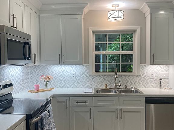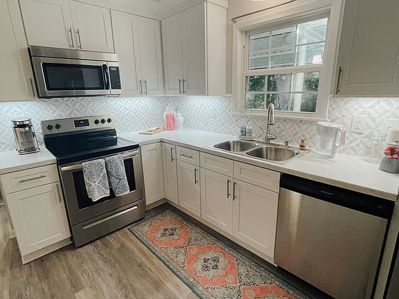 Recessed lightingStylish ltv flooringUpdated lighting fixturesStainless-steel appliancesFresh paintWell-appointed kitchen