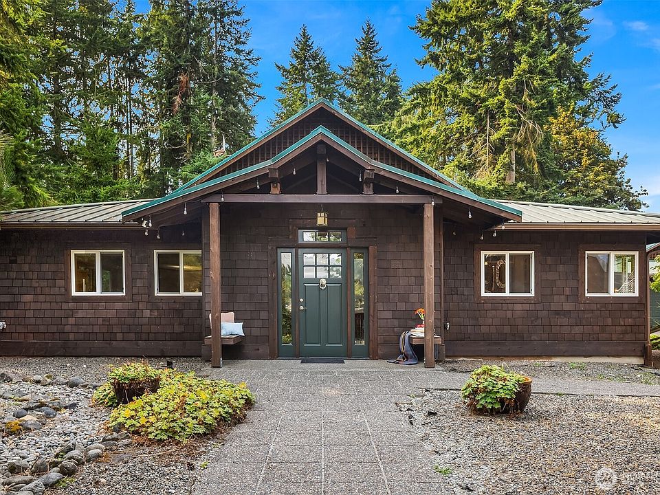 Timeless NW Craftsman by Asplund & Epstein, this retreat embodies Whidbey Island living with natural beauty & modern flavor. Wood shingles, timber posts & earthy tones ground the architecture in its forested setting. Minutes to downtown Langley & your fave coffee shop. Inside, the circular flow is designed for connection & comfort. Skylights & expansive windows fill the home with natural light. The kitchen offers double sinks, pantry & appliance garage. The primary suite has sliding doors to greenery, marble-clad bath with soaking tub & walk-in closet. 2 bedrooms provide stylish spaces. A large laundry, mudroom, storage & solar panels enhance daily life. Expansive yard, wide driveway & detached 2-car garage with covered walkway offer ease.