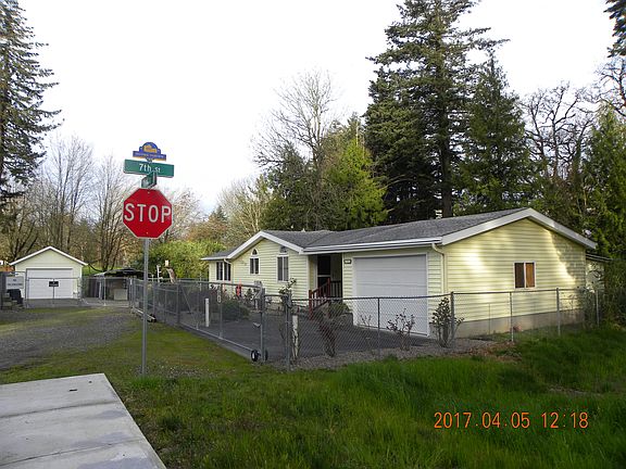 Quality 2 bedroom, 2 bath double wide on foundation w/vaulted family room addition nestled on almost a 1/2 acre lot adjacent to Cleone Park-Spacious kitchen w/all appliances & eating bar opens to dining & family rooms-Master bedroom boasts walkin closet plus bath w/walkin Japanese jetted tub-Versatile murphy bed accents 2nd bedroom-Amemities include A/C, covered breezeway to o'size single garage, 2nd detached garage, creek & park access