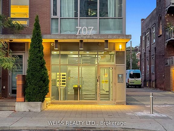 Welcome to lofts at 707 Dovercourt, 5 Story Boutique Building. Extremely well maintained, mostly owner occupied building. Just south of Bloor St W. Short walk to Ossington Subway station. Modern Kitchen with sleek cabinetry, sunny bright unit with exposed concrete ceilings with w/o to private east facing balcony. Enjoy ensuite laundry, long gallery hallway with 1 parking spot. Experience urban living at its finest in one of the most sought after neighbourhoods. Bloorcourt Village steps to unique Shops, trendy cafes, restaurants and amazing local