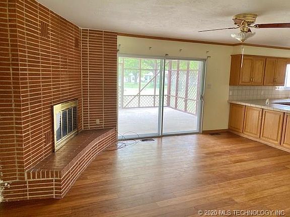 Nice Brick Home on 8 Lots with a Shop! Property features: 3 bedrooms, 2 bathrooms, open living room and kitchen, gas fireplace, formal living room, screened-in back porch, fenced yard, and huge shop with overhead door!