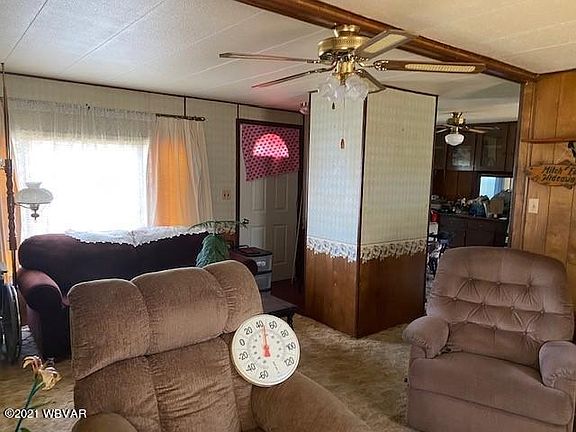 1965 trailer on permanent block foundation, fenced small yard, large LR and enclosed porch in front, galley kitchen and separate DR with built in cabinetry, 3 BR and full bath. Ramp and off street parking in carport at rear. Oil heat and A/C. Shed. Pretty spacious and very nice location near airport. Could use some new carpet. The basement is dry loc'd and dry, and would make a great storage/workshop.