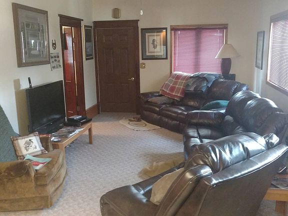 Two bedroom bungalow with heated detached garage. Open porch on front of the house with nice wood patio off the back.