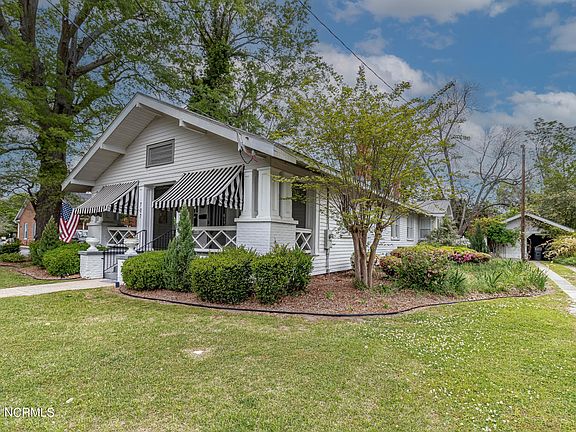 Charming Bungalow on Mulberry Street! The covered front porch greets you with black & white striped awnings. Perfect for relaxing, entertaining and reading while soaking in Eastern NC weather. Beautiful Hardwoods, Built-Ins, 9ft ceilings, Stunning Natural Light, Updated Kitchen and Baths. This 2200 Square Foot, Three Bedroom and 1.5 Bath home is perfect for someone who loves historic details. Convenient to shopping, SJAFB, medical, Herman Park, Library & Downtown! Schedule your showing today!