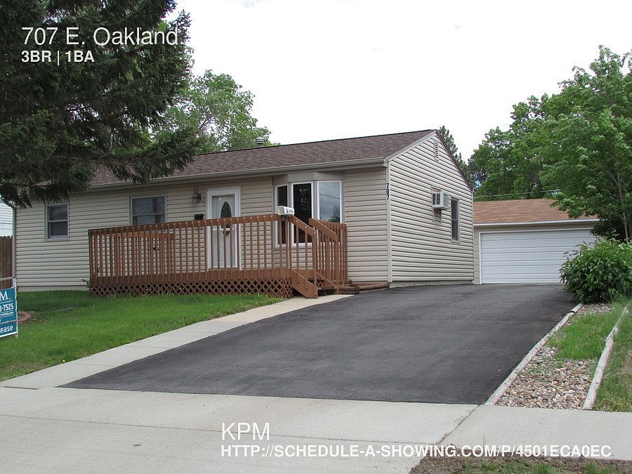 SCHEDULE A SHOWING ONLINE AT: showmojo.com/lh/4501eca0ec Schedule your appointment today to see this charming 3 bedroom, 1 bath home located at 707 E Oakland on the South side of Rapid City in the Robbinsdale area. This cozy ranch style home features gas heat, central air, and washer/dryer hook ups. Enjoy the beautiful partially fenced back yard, a large front deck and a double car garage! Don't delay, schedule a showing to see this property! Sorry, NO PETS! This home is SMOKE FREE! Tenant is responsible for all the utilities. To ensure accuracy view this listing on KPMs website at www.rapid-city-rentals.com.