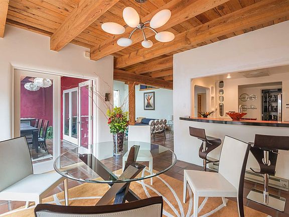 Wishing to be walking distance to Canyon Road, the Plaza, Patrick Smith Park, and the River Walk!? This condo in La Vereda, a mid 80's passive solar project, is it! At just under 2,800 square feet, this 3 BR, 3 BA home is an end unit, affording extra windows, light, and a small side garden. The main living areas include beams, high ceilings, and center fire place in the living room, a fabulous greenhouse dining room, and very cool kitchen re-do, including new stainless appliances in 2010, as well as a cozy walled patio with a corner kiva fireplace just off the common living spaces. Each bedroom is located on a different level for perfect privacy in this tri-level casa; and the master has a delightful south face deck on which to enjoy a sun bath! While the north deck off master bath is planned for expansion or possible hot tub! Some special details include origami PVC chandeliers in the dining room, porcelain sconces, pressed bamboo on East wall of the airlock entry, and a large storage bonus room off the laundry.
