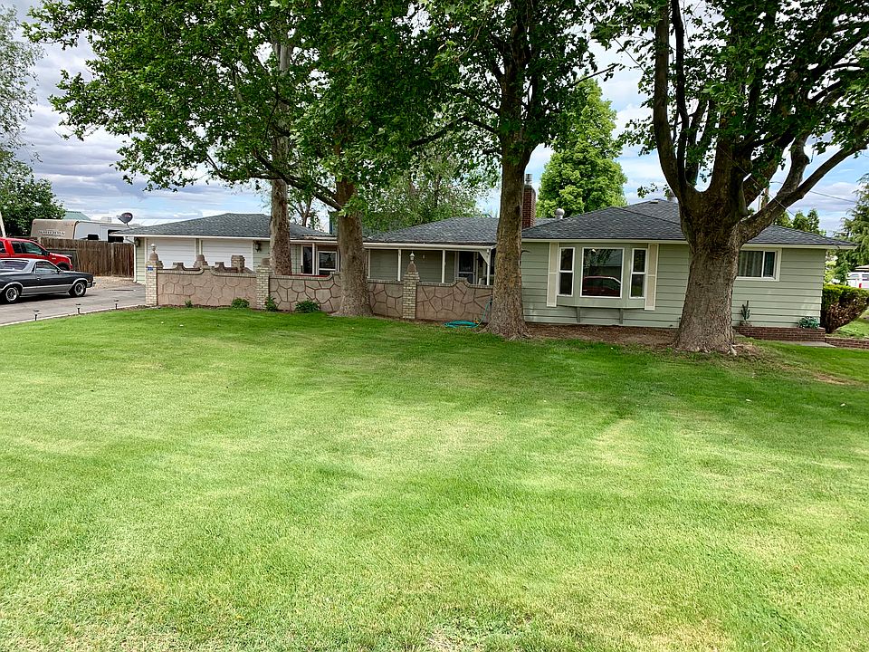 Spacious country home on a double lot close to town. 1,496 sq ft. Open concept, 2 bedroom, 1.5 bath, with granite countertops, stainless still appliances, and gas fireplace. Newer roof, flooring, carpeting, and fresh paint. Detached 2 car garage with covered breezeway between house and garage. Underground sprinklers, 12x12 storage shed, R.v parking. Large deck front and back, fenced backyard.