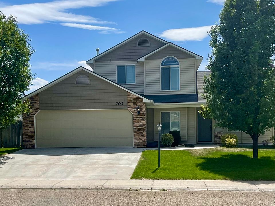 A great place to call home in a quiet and family-friendly neighborhood in Caldwell, with a neighborhood playground. Owned and managed by a Caldwell family. This is an attractive house with front landscaping, an enormous backyard, and room for everyone! The downstairs bedroom with inviting window seat could also be used as a home office or hobby room. The primary suite and two other bedrooms are upstairs. The primary has a walk-in closet with customizable shelving. Brand-new lvp flooring in the living room. New furnace in 2025. Multiple gathering spaces with a living room and family room! Half-bath downstairs and two full bathrooms upstairs. A sink and countertop are conveniently located in the laundry room. There is a doggy door in the garage leading to the backyard. Five minutes from downtown Caldwell and its vibrant Indian Creek Plaza! Renter is responsible for their power, water/utilities, and gas bills. Renter is responsible for lawn maintenance. Owner is responsible for HOA dues. HOA fines due to renter negligence will be passed to the renter. House-trained, legal pets are allowed but must be disclosed to owner at time of application or acquisition of a new pet. Lease term is 12 months. No smoking.