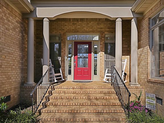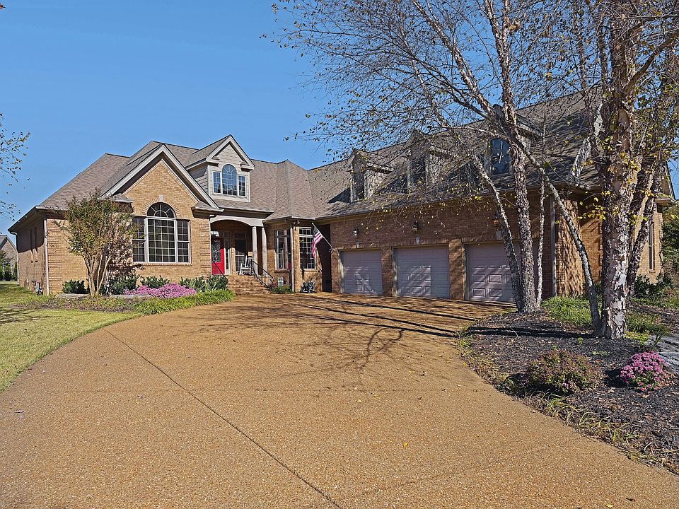 The large windows, elegant French doors, and transom windows add abundant natural light to the kitchen, living, and dining area. This home features a split floor plan ideal for both privacy and convenience. The kitchen has beautiful custom cherry cabinets with granite countertops. Living room has custom ceiling and gas fireplace. All bedrooms are on the main level. The large primary includes a trey ceiling and ample closet space. The ensuite offers a walk-in shower, spa tub, skylight, and double vanity. Laundry room includes the W/D and utility sink. On the way up to the bonus room, admire the quarter sawn white oak flooring. You will find a bonus room and a flex space—perfect for a home office or fifth bedroom. Plenty of storage and an amazing 3-car garage. Enjoy outdoor living on the Trex deck with a cozy fire pit. Neighborhood is family-friendly, complete w/sidewalks, lighting, and underground utilities.Recent upgrades, include new carpet and fresh paint throughout.