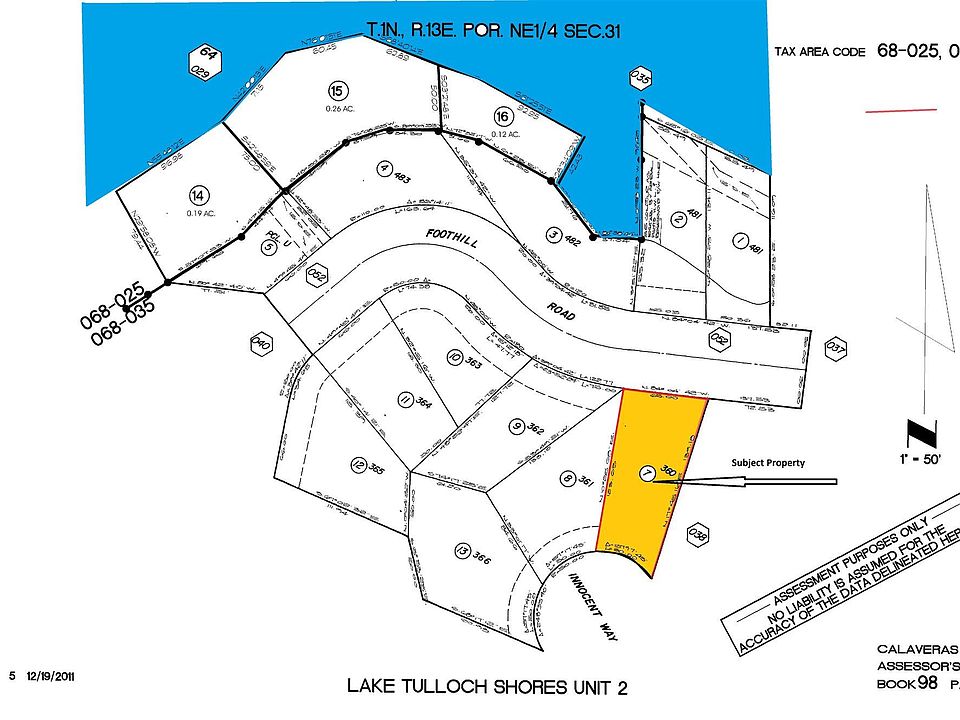 Available is lot 360 property address 707 Foothill Rd. Copperopolis, Ca. This is a lot that borders Innocent Way at the south property line and Foothill Rd. at the North line. This is a .17 acre lot that has a partial view into "Murrieta Cove". Property is also close to the two boat launch marina's. This is a gated community.