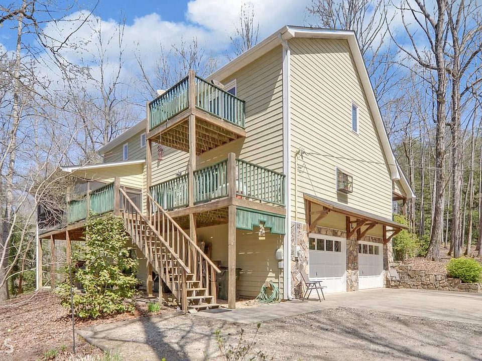 Secluded & private; Tucked away at the end of a gated drive. Stream-fed Koil pond w/two creeks on 4+ acres! Spacious kitchen w/custom cabinets, dining area w/french doors that lead to screened porch. Great room with vaults, sky lights, built-ins & wood burning stove! Master bedroom with walk-in closets & built in entertainment center. Hardwood floors throughout most of main floor. Master bath w/double vanities, huge walk in tiled shower. Full finished terrace level w/additional bath. Covered rocking chair front porch. New roof!!