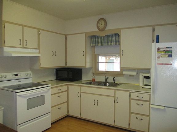 Great concrete drive, one car attached garage PLUS like new 2 & 1/2 car detached garage with heat and electric. Home has newer roof, great covered patio, beautifully remodeled bathroom and spacious rooms. Everything in top notch condition and ready to move into.
