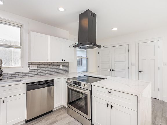 Modern vinyl plank flooringGreat natural lightFresh paintPrivate backyardGranite countertopsCrisp white cabinetsStainless steel appliances