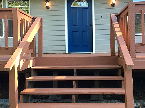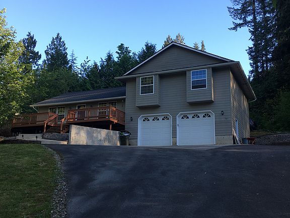 This well-built home is a castle that towers above both Harmony Drive and Old Stella road. It is just a few minutes from Ocean Beach Highway, yet has all of the privacy of modern country living with an open floor plan. It has 3 bedrooms (2 with window seats), 2 1/2 baths, 900 sq. foot oversized double car garage/shop with vaulted ceiling, office, beautiful kitchen with stainless steel appliances, dining room/living room, breakfast nook, family room, laundry room, private semi fenced backyard with fire pit, a large deck in the front of the house, and additional parking and an RV pad above. The large master bedroom has a private bathroom with separate bath/shower and walk-in closet. This split-level home features solid hardwood and ceramic tile floors, newer carpet, new light fixtures, and interior paint. The roof is brand new (installed in April 2017). For convenience, the home uses a MANABLOC water system which allows the homeowner to turn off/on water to each individual sink, shower, and toilet. The home is also plumbed for A/C with copper pipes running to the outside from the furnace in the attic. The biking and running trails nearby are some of the best in the Northwest and are within a few minutes walk. The home is situated just a few hundred feet from CenturyLink's dsl box and, as a result, the home has 60-100 mbit internet speeds; additionally the home is wired with Cat 6a ethernet cable.