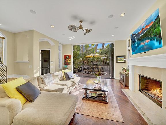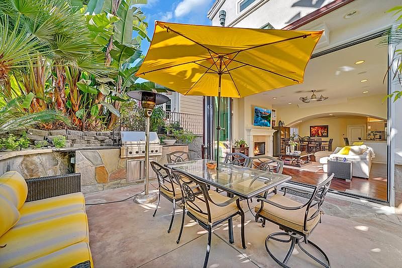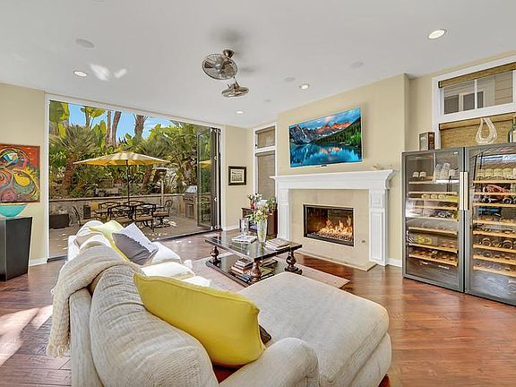Located in the heart of Corona Del Mar Village Walk just three blocks to shops and restaurants on PCH, and 1 block to parks. This 2300 sf home features both a rooftop balcony located off the upstairs family room and an oversized front private patio. These TWO EXCEPTIONAL outdoor spaces with, Viking BBQ, slab Granite, flagstone, tile, water features, TV, speakers, and refrigerator are ideal for entertaining. Featuring new dark wide plank hardwood floors, gourmet chef kitchen with granite countertops and full wet bar with wine cooler, 4 bedrooms, 3 full baths, custom paint, high ceilings, travertine floors, expansive archways, solid core doors, surround sound both indoor and outdoor, 2 fireplaces and an upstairs master suite with balcony, fireplace and spacious master bath with spa tub. Located slightly below street level with lush landscaping, this home offers privacy and terrific space for those who love to entertain and experience.
