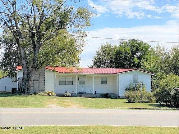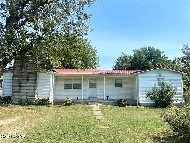 Cute as a button AND Carl Junction schools! 3 bedrooms, 1 1/2 baths, with original hardwoods. 3rd bedroom could be home office or hobby room with direct lighting from overhead built-ins. Upgrades throughout--metal roof & electrical box new in 2016; kitchen appliances, plush carpet in family room & vinyl flooring in kitchen/dining all new in 2017; heating/air unit new in 2018, master bedroom carpet new Oct '21. Covered front porch, covered back patio, big fenced yard, nice storage shed.