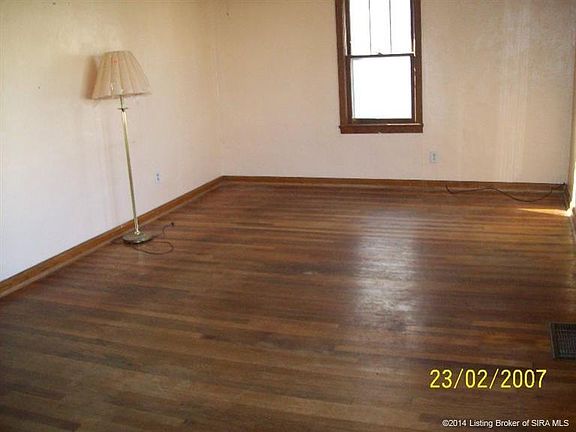 NICE STARTER HOME. Hardwood floors, 1 car attached garage. Near Floyd Memorial Hospital, grocery, restaurants & shopping areas. Easy access to interstate highway. Number of rooms, measurements and sq. ft. are not warranted. If critical buyer should verify.