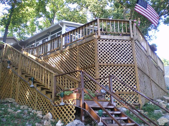 Priced to sell! Waterfront Grand Lake Bungalow. in protected cove overlooking the Dam. 40' covered boat slip. Huge master suite with private deck. Granite, steam shower, whirlpool. Florida room and decks on lake side. Short trip from Tulsa to your perfect get-a-way!!Square footage from tax records.