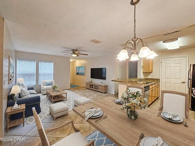This ground floor condo in Nautilus Cove is less than 1.5 miles from Pier Park and walking distance to the beach! The open living area, dining room and kitchen are spacious and inviting. Featuring granite countertops and stainless appliances with an upgraded set-in range/oven, the kitchen is well equipped and ready for cooking! With three bedrooms and two bathrooms the unit also has privacy and with a split floor plan! The flooring is tile throughout with durability and easy maintenance for those sandy feet from the beach! The storage space in the unit is plentiful with a large storage space off the hallway and it even has a coat closet at the front door. Nautilus Cove is a highly desired gated community with amazing amenities that include a large resort style pool, a club house that is furnished with a full kitchen, a fitness center, the children's playground and a pet friendly community offering walking stations for your furry friends. Centrally located on Panama City Beach, living in Nautilus Cove you'll have easy access to the beach, shopping, dining, and entertainment!
