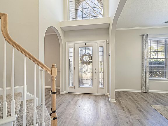 Located at the end of a cul-de-sac on one of the largest lots in Spring Lake - Carolina Forest, this 4-bedroom, 2.5-bathroom home gushes curb appeal! And once you're inside, it gets even better! The entryway is breathtaking, with high ceilings and light, bright, neutral colors that flow throughout the home. It's the attention to detail, like the crown molding in virtually every room, that really sets this home above the rest. On the first floor, you'll find the main living space, with luxury vinyl plank flooring throughout. The kitchen is fully updated with stainless steel appliances, granite countertops, tile backsplash, a coffee bar, pantry, an eat-in dining area (in addition to formal dining room), and plenty of room to add an island, if desired. Just off the kitchen is the laundry room with full sized, side by side washer and dryer. The half bath is also conveniently located between the kitchen and a flex room that's currently being used as an office. The kitchen also overlooks the living room, which leads to the screened porch featuring a vaulted ceiling, ceiling fan, and tile flooring. Outside is the huge, completely fenced in yard overlooking community pond, with a concrete patio perfect for grilling and entertaining. With the irrigation system in place, it's easy to maintain! Back inside on the second floor you'll find four bedrooms, all of which have carpet and ceiling fans. The master bedroom has a vaulted ceiling that continues into the en suite that is simply stunning. With a double sink, his and hers walk-in closets, wood-look tile flooring, a soaking tub, and walk-in tiled shower, you'll never want to leave! For added peace of mind, the seller is offering an Old Republic home warranty AND the home already has a transferable termite bond!
