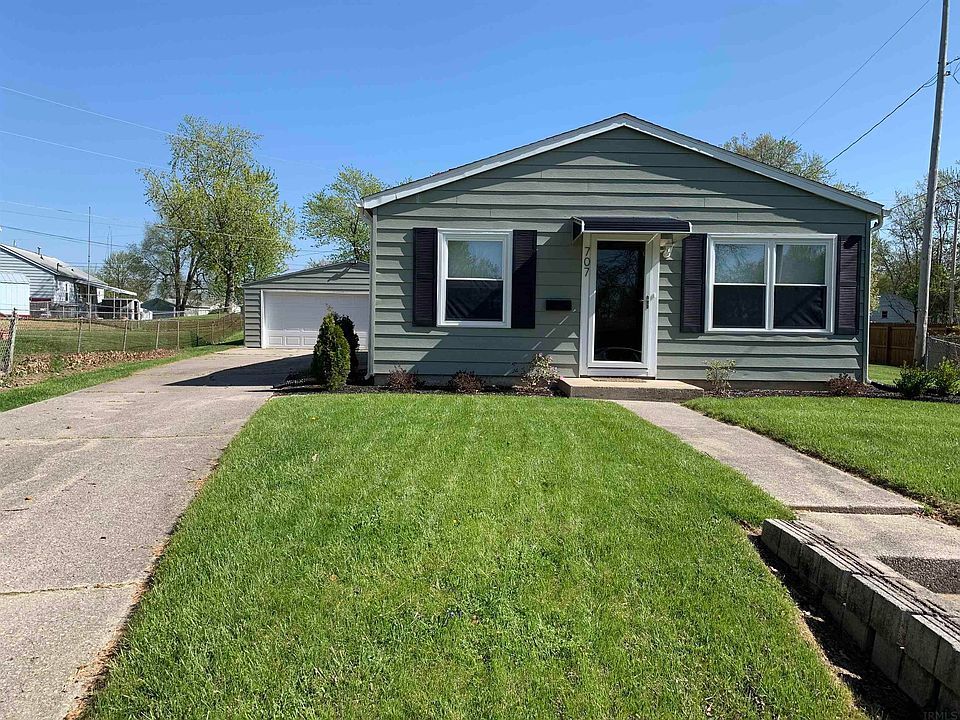 Beautiful updated ranch style home in Northcrest Subdivision. This home offers 3 bedrooms, 1 bathroom, open layout, master suite laundry, oversized detached garage, and a large backyard. Here are all of the updates from 2021: HVAC, water heater, leaf filter system on home & garage, garage door and garage opener system, paint & window treatments throughout, 2 storm doors, all closet doors, 2 awnings, refrigerator, mulch and stones(2022)
