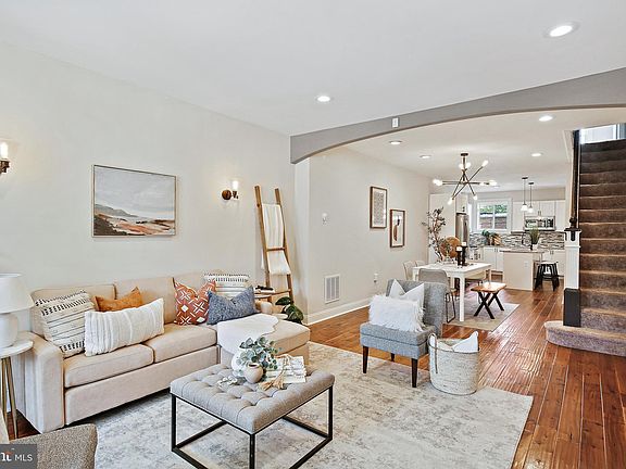 This 3 Bedroom, 3 Full Bath Rowhome, in Waverly, Must be seen! Enter this Home to find Gleaming Hardwood Floors which continue throughout the Open Concept Main Level. The Gourmet Kitchen features Stainless Steel Appliances including Gas Cooking, Stainless Range Hood, Granite Counters, Tile Backsplash, Island with Breakfast Bar, Pendant lighting, and white Shaker style cabinets. The Bright, Open Concept, Dining Room and Living room has access to the rear deck and fenced in backyard. Make your way upstairs to find the Primary Bedroom with Carpeting, Walk-in closet and attached Primary Bath with Dual Vanity, Large walk-in Shower with Gorgeous hexagon tile accents and frameless glass shower door. Also on this level is a Second large Bedroom, and a Hall Full Bath with Tile flooring and Tub/shower combination with custom Tile surround. The Finished Lower Level Features a family room, Barn door to the laundry room, and a third Bedroom with Carpeting, Recessed Lighting, large Walk-In Closet, and access to the fenced-in rear yard and patio. A Full Bath with Tile Flooring, Shower with Subway Tile Surround and the Utility-Storage room round out the lower level. This home is close to the Y, Dining, Shopping, Our Playground at Stadium Place and convenient to Johns Hopkins University. This Home must be seen-Don’t Miss it!
