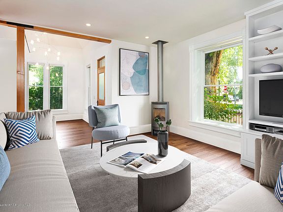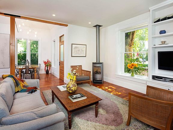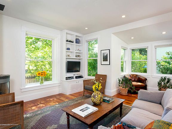 Light and bright Victorian in Aspen's popular West End neighborhood! Situated on a corner lot that is an easy walk to the Music Tent, Harris Hall and the Aspen Institute. Living room, dining area and kitchen have vaulted ceilings. Main floor master looks out to the side yard. Upstairs has a loft bedroom and its own bath. Lower level has two bright bedrooms and a family/gathering area with another full kitchen and a separate outside entrance. Plenty of parking, in addition to oversized one-car garage.
