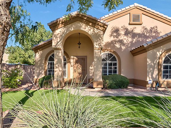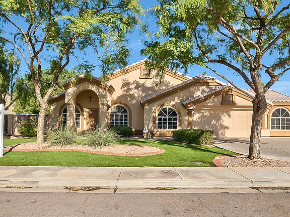 Pride of ownership here folks! BASEMENT home, 4BR+ den/3BA. Superior floor-plan with lower level bedroom and full bath. Separate living & family rooms and master bedroom, den + 2-bedrooms on the main level. Upgraded kitchen with quartz stone counters, stainless steel gas appliances, oakwood cabinetry and service island. Vaulted ceilings, ceiling fans, new carpet and fresh new paint throughout! 2-Car EXPANDED garage with added storage area for all your seasonal storage needs, bikes & toys... Beautiful landscaping with mature shade trees, grass in the front & back, fire-pit and a swimming pool to stay cool during the summer months. Truly a home for entertaining! NO NEIGHBORS behind you, conveniently located in Mesa near the 60 & Red Mountain 202 freeway.