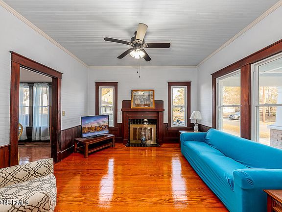 Old House Living in the river town of Bridgeton. With just a 5 minute drive to Historic Downtown New Bern, this home is located two blocks from the river and a short distance to the town park and the amazing sunsets that frame the city of New Bern. Built in 1900, this solid Craftsman has many original features including original trim, woodwork, beadboard ceilings and heart pine floors. Updated HVAC, water heater and total bath renovation, within the last 3 years. Freshly painted inside and move in ready. Two bedrooms downstairs and a private loft upstairs (another 336 square feet). Wildlife landing within 15 minutes for boating and recreation. Bridgeton is a growing community with lots of charm.