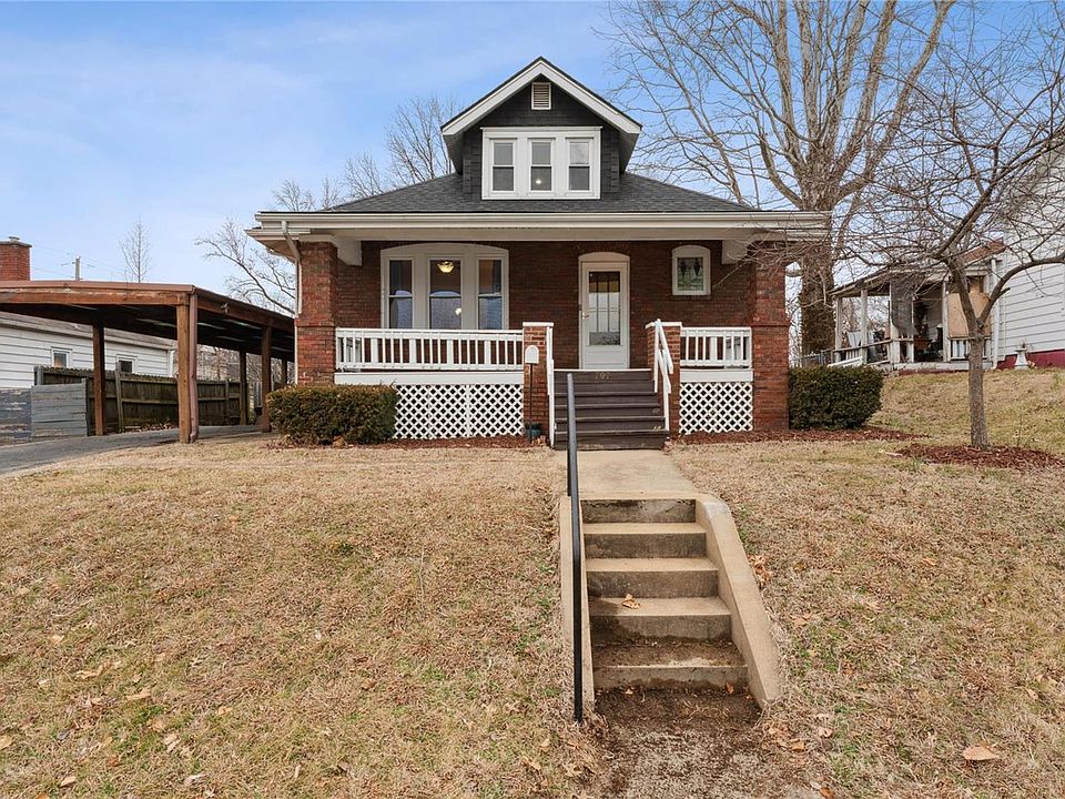 Welcome to 707 N Charles, an adorable, full brick bungalow w/ dreamy covered front porch in downtown Belleville. This 3 bed, 2 bath home w/ over 2700 total living sqft is loaded w/ character from the spacious living room w/ large windows, wood accents & french doors leading to the separate dining room perfect for hosting. The kitchen has stainless steel appliances, ceramic tile floor, walk-in pantry, ample cabinet/counter space. 2 bedrooms, full bath & laundry rm complete the main level. Upstairs, a large bonus room that could be a primary or guest bedroom, home office or more w/ mini split! Full finished basement w/ lush carpet & updated full bath makes an excellent recreation rm for kids & adults alike. Fenced backyard has a large patio for bbqs & outdoor enjoyment. Featuring a newer roof, off-street, covered carport parking, 1 car alley garage, conveniently located near the town square in the restaurant, theater & shopping district w/ easy access to St. Louis & Scott Air Force Base!
