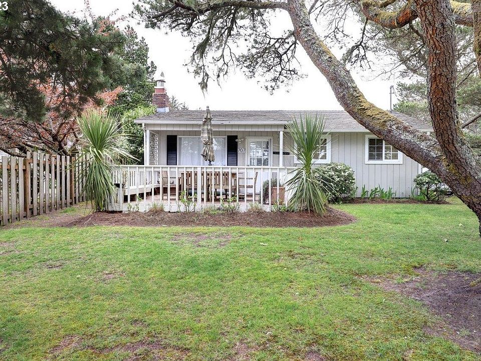 "CUTE FACTOR". COTTAGE IN THE HEART OF GEARHART ACROSS FROM THE GOLF COURSE, WALKABLE TO DOWNTOWN GEARHART AND THE BEACH.  BEAUTIFULLY LANDSCAPED AND UPDATED THROUGHOUT, COZY WOOD BURNING FIREPLACE, BUILT IN SEATING IN THE DINING AREA, BRIGHT KITCHEN, DECKS BOTH FRONT AND BACK, FENCED BACKYARD. PROPERTY IS BEING SOLD FURNISHED, SO JUST BRING YOUR BEACH GEAR, AND GOLF CLUBS... THIS IS THE IDEAL GET-AWAY...MAKE IT YOURS!!!