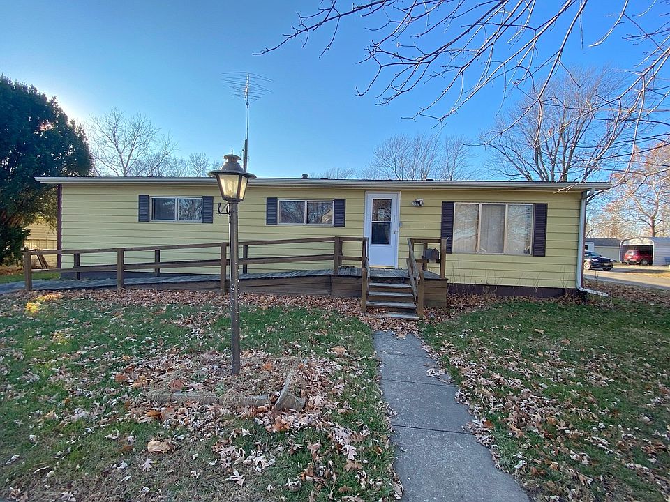 House For Sale in Town with Building 707 N Fillmore Mount Ayr, Iowa This 3-bed, 1-bath manufactured home is located on a quiet street with the convenience of being only seven blocks from the square. This property sits on a large corner lot and has a fenced-in yard and a tool shed. Included with the property is a 36 x 24 (864 sq ft) detached garage/shop that was built in 2009. The shop part of the garage is insulated and has heat and air conditioning. The home has central air and heat and is handicap accessible with ramps going to both the front door and the back door. The master bedroom has two closets, a large walk-in closet, and a sliding door one as well. The bathroom is updated with a nice tub/shower combo. If you are looking for an affordable house with a nice building included in the price this property is the one!