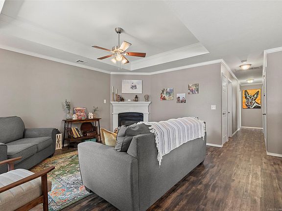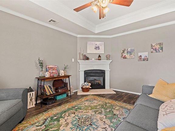 Beautiful home with many updates including, flooring throughout, Quartz countertops in kitchen, backsplash, cabinets have been painted, dishwasher and stove in 2018, kitchen faucet/sink. Updated Air Conditioning in March 2022. Primary bedroom has two closets, private bath with double sinks. Private patio off the primary bedroom. Living room features a cozy fireplace. Back yard has privacy fence with lots of room to play. More pictures coming soon!