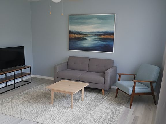 Great Living Space: The living area is open and bright, featuring a light grey color palette and beautiful light wood-look flooring (as seen in photos).