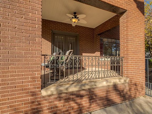 A gorgeous brick exterior, charming front patio, and private gated drive create an inviting first impression. Step inside to a spacious living room featuring original hardwood floors, a classic fireplace, and beautiful historic details. A covered side patio provides the perfect spot for morning coffee or quiet relaxation. Just off the entry sits a small private study, complete with a built-in desk and storage closet.