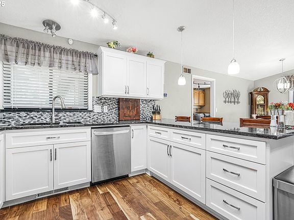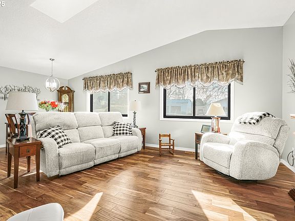 Beautifully Maintained Ranch on a Spacious .41 Acre Lot! This stunning home offers single-level living at its finest with gorgeous hardwood flooring throughout the main living spaces. The open-concept design creates a seamless flow, featuring a living room with vaulted ceilings and a skylight that fills the space with natural light. The kitchen has beautiful cabinetry, countertops, a convenient eat bar, stainless steel appliances, pantry, and a skylight. Enjoy cozy evenings in the family room, complete with French doors and a bay window that overlooks the lush surroundings. The primary suite has a walk-in closet with built-ins and a private bath with double sinks. Two additional bedrooms, a full bath, and a laundry room offer functionality and comfort. A versatile room with a closet and carpet off the garage can serve as a fourth bedroom, office, or bonus space. The oversized 3-car garage provides storage with built-in shelving, while the large driveway accommodates RV parking. The roof is five years old; the water heater is five years old, and the HVAC is three years old. New Andersen Windows, with a transferable life-time warranty. Step outside and enjoy the expansive lot, perfect for gardening, play, or entertaining. Conveniently located near restaurants, Chehalem Glenn Golf Course, and Rogers Landing Park with swimming and a small boat launch, this home offers the perfect blend of comfort and lifestyle.