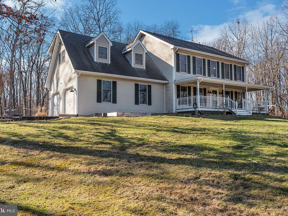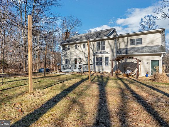 Discover this exquisite retreat nestled amidst serene woods, resting on 5 acres of private land, offering unparalleled tranquility. The meticulously cleared front and back yards create an idyllic setting for gatherings of all kinds. Step onto the newer stamped concrete walkway leading to the spacious front porch, inviting you into this delightful abode. Inside, hardwood floors guide you through a formal dining room and home office space into the welcoming living room, adorned with a charming wood-burning stove and brick hearth. The upgraded kitchen boasts stainless steel appliances, granite countertops, a stylish tile backsplash, and recessed lighting, seamlessly flowing into a generous breakfast nook with expansive views through large windows. The primary bedroom suite features a walk-in closet and a newly renovated en suite bathroom, boasting exquisite tile work, a marble top vanity, tub/shower combination, toilet, and mirror. Three additional sizable bedrooms and a convenient second-floor laundry room add to the home's allure. A dual-control heat pump central system with ultraviolet filtration, ultra high-speed internet capabilities, and fresh paint throughout. The wood fire cast iron stove efficiently heats the entire house without electricity, complemented by baseboards in rooms and bathrooms, and upgraded light fixtures. Entertain outdoors on the spacious deck overlooking the secluded backyard. The property features numerous amenities such as multiple nature walk trails, a peat gravel patio area, a Koi/goldfish pond, gazebo, large fire pit, basketball hoop, hot tub, greenhouse frame, and a spacious shed with a chicken coop. Enjoy the wildlife habitat area and deer watching opportunities, along with swings, hammocks, heaters, and ultra high-speed internet connectivity. Conveniently located near major roads and town, this residence offers the perfect blend of luxury, comfort, and natural beauty.