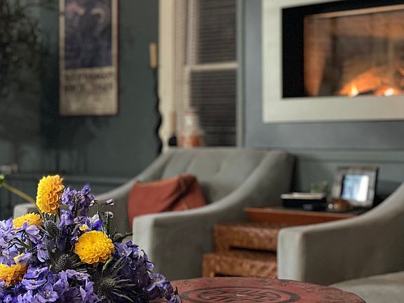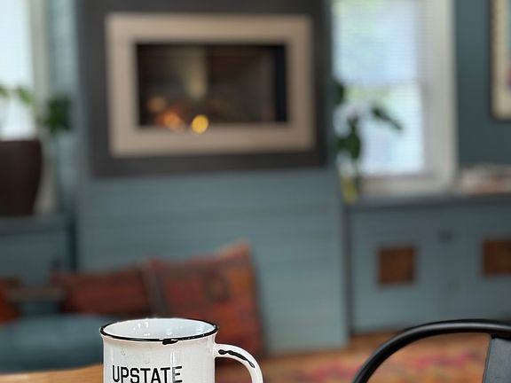 Beautifully furnished modern loft style 2nd floor apartment with vaulted ceilings with ceiling fans in living area and primary bedroom. Decorator touches. Tons of natural light. Gourmet cook's kitchen with stainless steel appliances and cement countertops- eat at side bar with 2 plush stools and coffee station. Kitchen access to upper, 2nd floor deck with outdoor teak, umbrella table and chairs. Easy access to lower level deck and beautifully landscaped and fenced back yard. "Garden of Eden" vibe with seasonal perennial flower borders, flowering vines and fruit trees. Lower level deck complete with dining area, firepit, and covered gazebo. Dining room with vintage dining table and 4 chairs. Duxiana mattress with luxury headboard and footboard in primary bedroom along with free standing gas fireplace. Queen bed in secondary bedroom. Modern built-in gas fireplace in fully furnished living room. Bathroom with walk-in tiled shower and separate jacuzzi tub. Laundry closet with stackable washer/dryer. Miele vacuum. Private parking spot. Mountain views, private, bordered by streams. Minutes to skiing at Belleayre and Plattekille. Great restaurants and markets, boutique shopping and art galleries nearby in towns of Fleischmanns, Roxbury and Margaretville. Easily accessible by Trailway bus. 2.5 hrs from Manhattan Renter responsible for gas, electric, internet, cable. First and last months rent and security due at signing. 1 pre- approved pet.