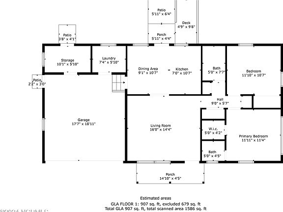 - Total interior livable area: 907 sqft