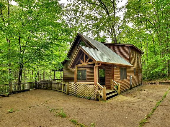 Fightingtown Creek Front! This 4BR, 3BA lodge style cabin overlooks the pristine waters of one of the most popular trophy trout waterways in the state. Listening to the cascading waters from the front porches is bound to relieve some much needed stress. 2 levels of covered porches span length of home w/ wrap around connecting deck. Open floor plan w/ finished basement that includes REC/Den area plus an additional BR & BA. In addition to 4BR's, this property has a huge sleeping loft that would make a great office or you could have additional sleeping quarters. No rental restrictions G prime investment/rental potential. Very level to the waters edge which is a rare find. Rock FP, cathedral ceilings throughout, fixed glass windows, concrete driveway + many more amenities. Located less than 10 minutes to downtown Blue Ridge & McCaysville.