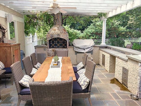 Beautiful home w gourmet indoor and outdoor kitchens, all baths recently remodeled (marble), quiet street in desirable Westover Hills. Eat-in Kitchen: GE Monogram appliances - 6 Burner + Grill and 2 oven, wood paneled, side by side, full size refrigerator & freezer, natural cherry cabinets, granite counters, onyx & carved tile backsplash, built-in wine rack and leaded glass hutch, Miele cappuccino/espresso machine Family Room: Built-in bookshelves and TV, carved cherry mantel, walk-out French doors to pool Living Room: Carved rose marble mantel Dining Room: 2 Built-in china displays, grass cloth wall covering Lower Level: Play area, 92” movie screen & projector, gym with aerobic floor Lower Level Bathroom: marble steam shower and double sinks Master Bedroom Suite: Master Bedroom with sitting room, his and her dressing rooms with California closet ensembles Master Bathroom: Marble counters and shower, rain, massage & handheld showerheads in oil rubbed bronze, his and her vanities, Bain Ultra jetted tub with crystal chandelier Bedroom 2: Extra-large size accommodates queen size bed, couch, desk and dresser Bathroom 2: 2018 renovated bath with dove gray cabinets and Carrera marble counters, double size walk-in shower with double showerheads and marble subway tile Bedroom 3: currently used as upstairs office – 2 closets Bedroom 4: Extra-large size with balcony overlooking pool and backyard, walk-in closet Bathroom 3: 2018 renovated bath with Calcutta gold marble counter and inlaid marble shower Bedroom 5: 1st floor bedroom Bathroom 4: Full 1st floor bathroom with convenient access from pool Laundry Room: Upstairs laundry Powder room: designer cabinet Lawn: Binkley designed plantings with irrigation system for lawn and courtyard garden Pool: Salt water system and 2019 robotic vacuum, courtyard with stone wall with integrated lighting Outdoor Kitchen: Portuguese BBQ with 6 skewer rotisserie, All Flame stainless gas BBQ, sink & running water, slate & stone island, covered pergola with seating for 10 House Systems: 12kw whole house Generac natural gas generator, central vacuum house & garage, AD camera & alarm system, built-in speakers 1st floor and patio, 3 zone HVAC, 2 tankless Rinnai hot water heaters