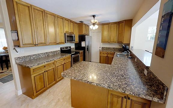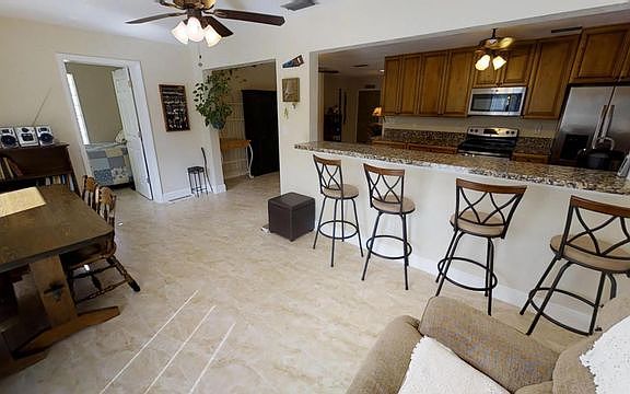 Amazing Super Clean totally renovated Block Home with a huge fenced in backyard. Ten minutes from the Beach! One whole corner of it is a shaded sitting area with pavers! Plenty of room for a boat or small RV and it has a pad for your trailer. You will feel like you just walked into a brand-new home. This open floor plan home was completely renovated in 2015. The previous owners put in a new Roof, AC with all new vents, Double pane windows, a completely updated Kitchen with Stainless appliances & recessed lighting, updated Bathrooms, New Ceilings, Ceiling Fans in all rooms, new inside doors, and Tube lights in Living Room. It was also Painted inside and out. Even the garage floor was painted. Recently a new Energy Shield/Attic blanket was installed along with an air gap seal & solar