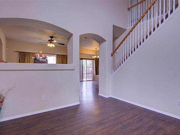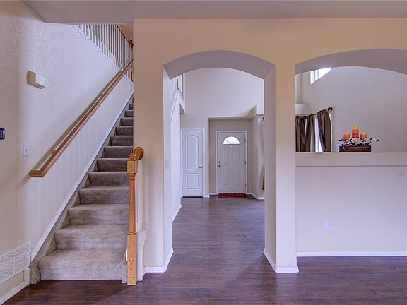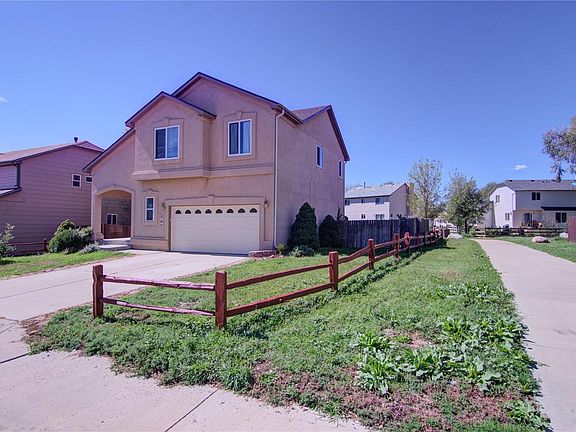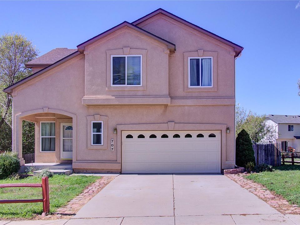 Nice stucco 5/4/2 two-story, close to military bases, shopping and schools. Main level features a living room w/cathedral ceiling; family room with/large picture window, gas fireplace and lovely arches over mantle and entryway; half bath; dining area w/walkout to back patio; kitchen w/granite counters, over-sink window, center island, and pantry. The spacious master bedroom is on the upper level w/WI closet, add'l closet, soaking tub, shower, double vanity, and separate toilet area. There is a full bath and 3 additional bedrooms on the upper level. The basement features one bedroom w/walk-in closet and under stair storage area; a roomy family/entertainment area; utility room w/some additional storage, and a bath (currently capped and not being used by sellers). New deck in 2016; new hot water heater/furnace in 2018. New vinyl windows in 2017. Roof being replaced due to last hail storm. Walking trails, greenway and park behind home. It's only a minute away!