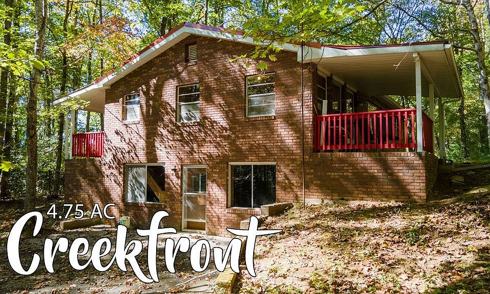 Discover this 2-bedroom, 1-bath brick ranch on UNRESTRICTED 4.75 acres of usable private creekfront land near town (zoned residential). The home features original wood floors, a durable metal roof, two wood stoves and a concrete driveway that also extends well into the property. This property offers plenty of untapped potential, including an unfinished basement for easy expansion or customization to suit your needs. The land includes wooded rolling areas as well as open pasture, ideal for additional structures, houses or small family farm. Enjoy peaceful mornings or evenings on the front and back porches, soaking in the serene views of the surrounding landscape. Combining the convenience of near town living with the tranquility of a private retreat, this brick ranch is perfect for those seeking a peaceful getaway or a full-time residence with room to grow. Don't miss this unique opportunity to own a rare blend of privacy, space, and prime location.
