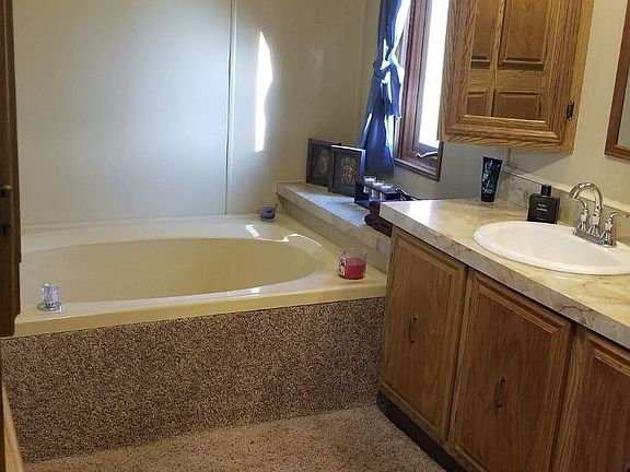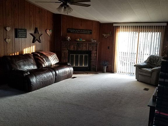 This manufactured home sits on 1.3 acres. Big yard with a big garage as well. Don't miss out on this home tucked back off the street in the middle of town. It offers 2 bedrooms, master bedroom has a master suite as well. Laundry and everything all on one floor.