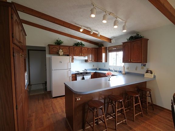 Original owner is only one to live in and love this home. Immaculately maintained, cared for home. Easy access to 127. Oak kitchen with eat-in bar and stools, slider in dining room to deck. Cathedral ceilings in kitchen, dining and living room. Ceramic flooring in bath and laundry, wood laminate in kitchen and dining. Basement is clean and would make nice additional living space.