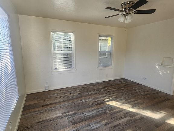 Cute and clean, recently remodeled 2 bedroom, 1 bath cottage house in convenient South Central Visalia location. Six tiny houses surround a landscaped and fenced central courtyard in this quiet, nicely maintained complex. Each unit is a completely free-standing house, with no shared walls, private yard, and individual laundry hookups! Brand new vinyl plank flooring in living room, original refinished wood flooring in bedrooms. Kitchen, laundry room, and bathroom have ceramic tile floors. New paint highlights interior woodwork. Remodeled kitchen features freshly painted cabinets, granite counter top with stainless steel sink, garbage disposal and apartment-sized dishwasher. Gas stove with built-in microwave oven range hood. Refrigerator space has water supply for an ice maker. Renovated Jack-and-Jill style bathroom connects to both bedrooms and contains a pedestal sink and combination tub/shower with beautiful tile surround. New dual-pane windows and mini-blinds throughout this charming, newly renovated house. Ceiling fans in living room and bedrooms. CENTRAL HEAT and AIR CONDITIONING. Laundry room has hookups for washer & gas dryer. Tenant provides their own washer/dryer and refrigerator. Private, shady fenced backyard with newer 6 ft cedar privacy fencing. Parking lot in alley with assigned parking spaces for two cars. Front courtyard landscaping maintained by landlord. Tenants are responsible for back yard care. Tenant pays for electricity, gas and water. Landlord provides sewer and trash services. Close access to 198 Freeway, Mt. Whitney High School, downtown Visalia and Kaweah Health hospital. Area schools are Mt. Whitney High School, Divisidero Middle School and Washington Elementary. 707 South Encina Street, Unit B. PLEASE DO NOT DISTURB EXISTING TENANTS OR WORKERS ON SITE. This is a No Smoking property. $1,295.00/month + $1,295.00 deposit. Initial lease is 6 months, with option to renew after initial term. Email or call to schedule an appointment and receive an application. Phone contact preferred. Leave a voice message to receive a return phone call to set up an appointment to view home and receive an application. Drive by to view exterior. Please do NOT disturb existing tenants or workers on site. Email inquires will receive an automated email reply with an application. A completed application is necessary to schedule a viewing appointment. Once application has been submitted, please CALL and leave a message to schedule a viewing appointment. You must leave a voice message to receive a return phone call. Callers who simply call and hang up without leaving a voice message will not receive a call back. Due to large amounts of spam, emails MUST contain valid phone number to receive a reply. Owner pays sewer & trash and provides common-area yard maintenance and pest control. Tenant pays water, electric & gas. Tenant responsible for backyard maintenance. This is a No Smoking property.