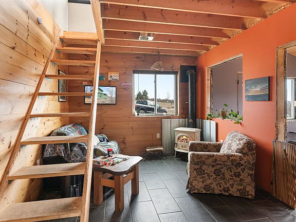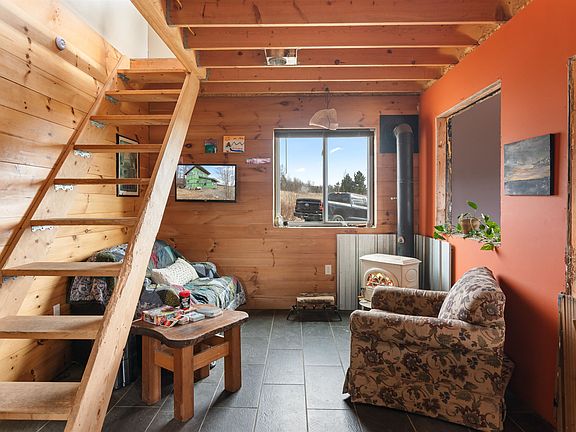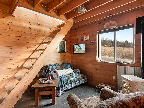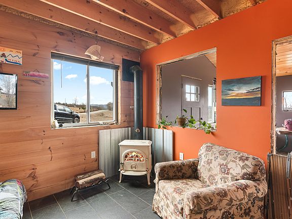 Incredible off-grid opportunity for a buyer ready to add the finishing touches to this cozy home located on a quiet paved road near Jay Peak. As you enter the first floor, you'll be greeted by a large entryway living space with a high sloped ceiling and wrap around windows. You'll then find a sitting area with a warm wood stove and wood beams on the ceiling. Continue through to the kitchen, where you'll immediately note the gorgeous raw edge wood counters and a window over the sink looking out over your sweeping views. A bathroom with a galvanized tub completes the first floor. Upstairs, there is an open loft space and 2 rooms, leaving many possibilities for sleeping and recreation space. Currently used as 3 separate sleeping spaces, but could be converted into an owner's suite or office space. Outside, you'll find privacy, abundant wildlife and beautiful sunsets over the mountains. Drilled well, septic, and generator on site, and electric available on the road. 2 minutes to quaint Montgomery village, an hour to Burlington, and 90 minutes to Montreal. Don't miss this chance to own your own little slice of heaven in Vermont. Open house Sunday 2-4.