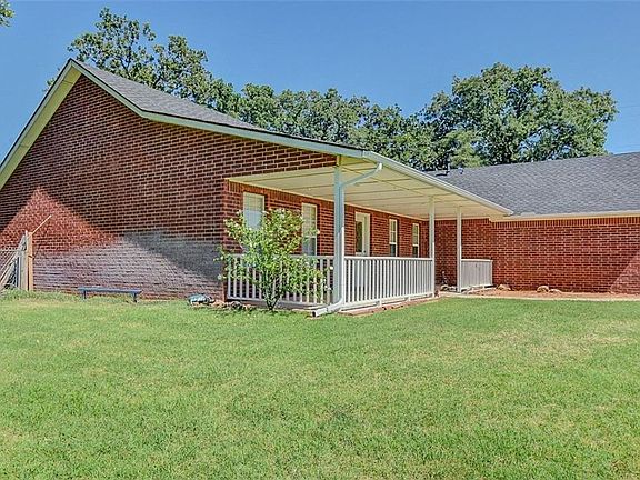 Great home with large yard and trees. Awesome living room, nice kitchen with pantry and eating area. Master suite is fantastic with tile shower, whirlpool tub, dbl vanities and a large walkin closet. There is a nice study with ceiling fan. The other two bedrooms have a jack & jill bath with dbl vanity, tub/shower. The property is pretty, with good grass and large trees. It is on a fantastic well and septic system. The location is wonderful with easy access to Hwy 62 to take you to Norman, OKC , Chickasha, airport or turnpike.